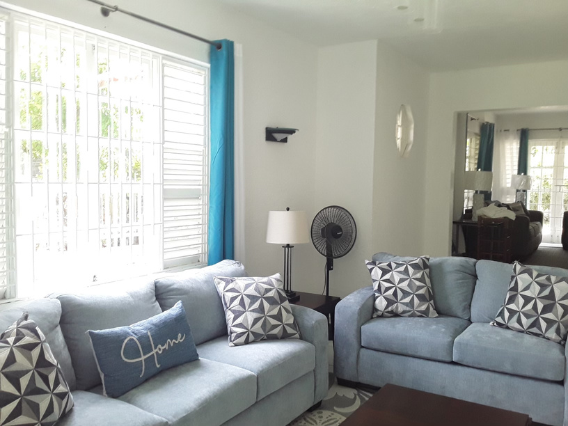 Step into the family room of our home and feel the embrace of island comfort. This room, designed with relaxation in mind, features plush seating that invites you to sink in and unwind. The vibrant colors reflect the spirit of Jamaica and opening the windows allow the gentle breeze to enhance the serene atmosphere. It's a space where laughter fills the air, stories are shared, and the rhythm of Jamaican life is not just observed but felt. Here, comfort is not just a feeling, it's an experience.